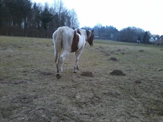 Bei Prima sah ich noch etwas matschige Äppelhaufen. Ich vermute, die Aufregung gestern ist ihr auf den Darm geschlagen. Das ist bei Prima nämlich immer so, wenn sie Stress hatte.