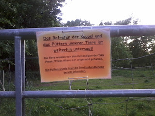 Als wir dann schließlich wieder zurück zum Auto gingen, entdeckten wir an mehreren Stellen des Konik-Geheges diese Schilder hier.